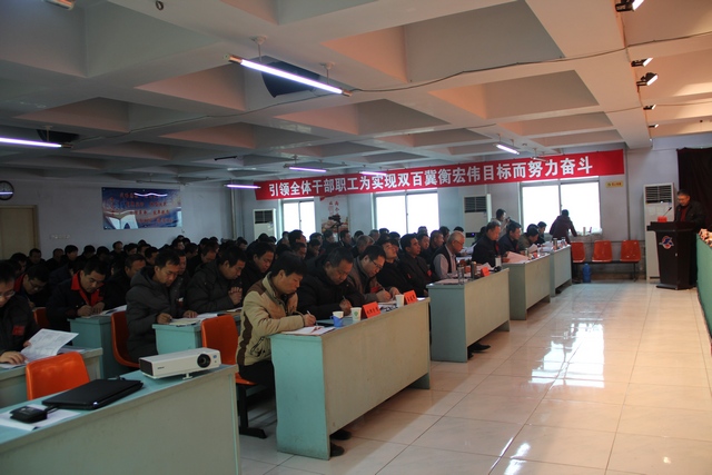 會(huì)上,王平生總經(jīng)理向大會(huì)作了題為《認(rèn)清形勢(shì) 扎實(shí)工作 創(chuàng)新圖存 順勢(shì)而為 努力實(shí)現(xiàn)冀衡集團(tuán)更高質(zhì)量穩(wěn)步發(fā)展》的總經(jīng)理工作報(bào)告;機(jī)關(guān)職能處室作了相關(guān)專題工作報(bào)告,王金石副總經(jīng)理作了化學(xué)公司生產(chǎn)經(jīng)營(yíng)工作報(bào)告。