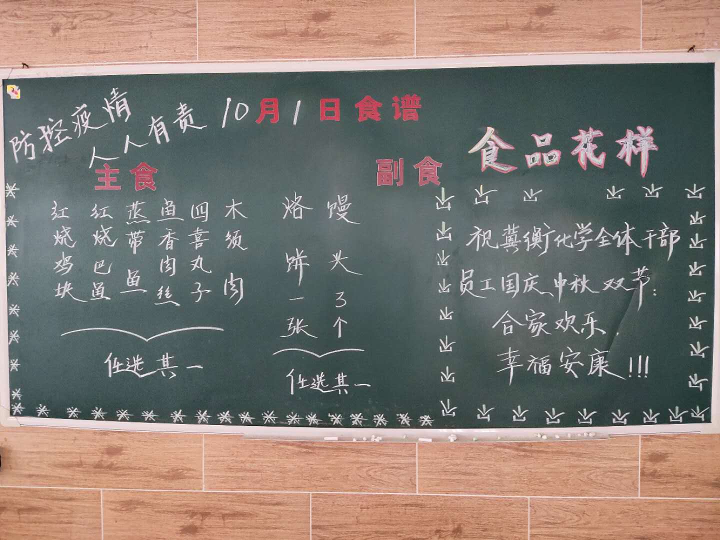 在一年一度的中秋節(jié)來臨之時,又逢今年的國慶佳節(jié),在這“雙喜臨門”的美好日子里,為了讓員工吃得開心,吃得舒心,今年國慶、中秋“雙節(jié)”前,由辦公室牽頭,對員工愛吃什么菜進(jìn)行了專題調(diào)研,并從飯菜的質(zhì)量和味道上下功夫,不斷創(chuàng)新烹飪方法,變換新花樣,節(jié)日期間,推出了紅燒雞塊、紅燒鲅魚、蒸帶魚、魚香肉絲、四喜丸子、木須肉等菜品,在確保營養(yǎng)充足的情況下,力求營養(yǎng)可口,受到了廣大員工的好評,讓員工吃出好心情,更好地投入到工作中去。